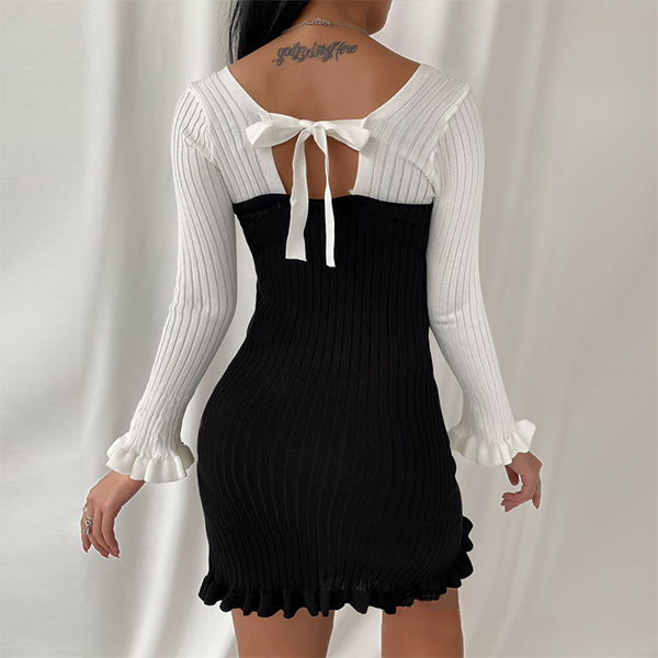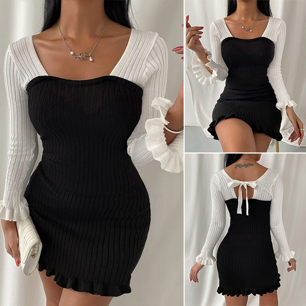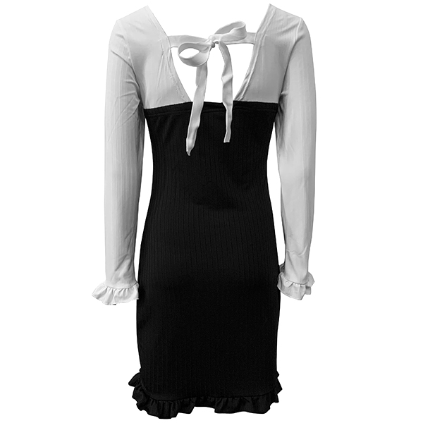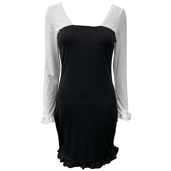Don't like too simple dress? Then you can make your eyes focused don this piece. Combines of white and black tone,this dress can showcase your slender figure with its fit silhouette. Moreover,the stringy selvedge design at the cuff and hem part will make this piece look more attractive and charming. Your perfect choice in these spring and autumn days.