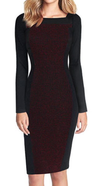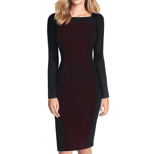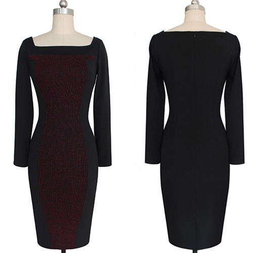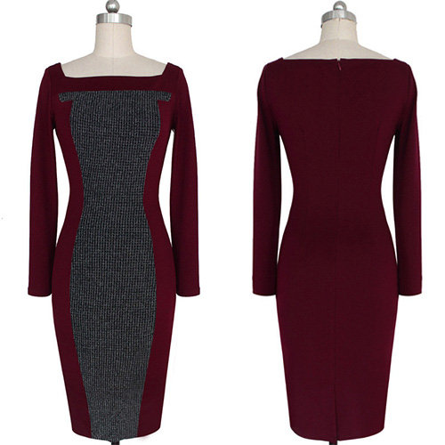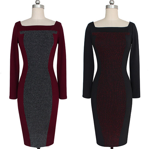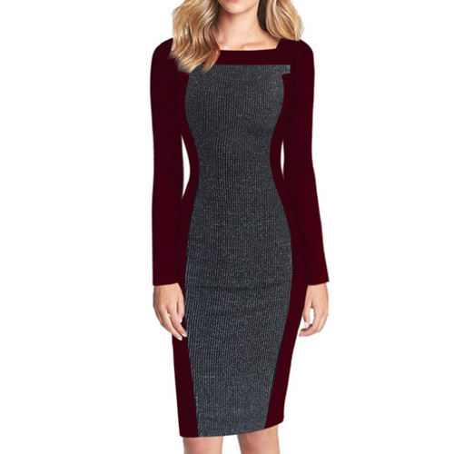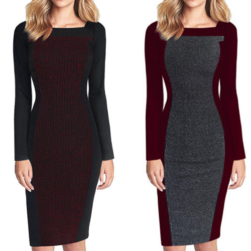 This dress features contrast color style,elegant and stylish. Outfitted with long sleeve,square collar