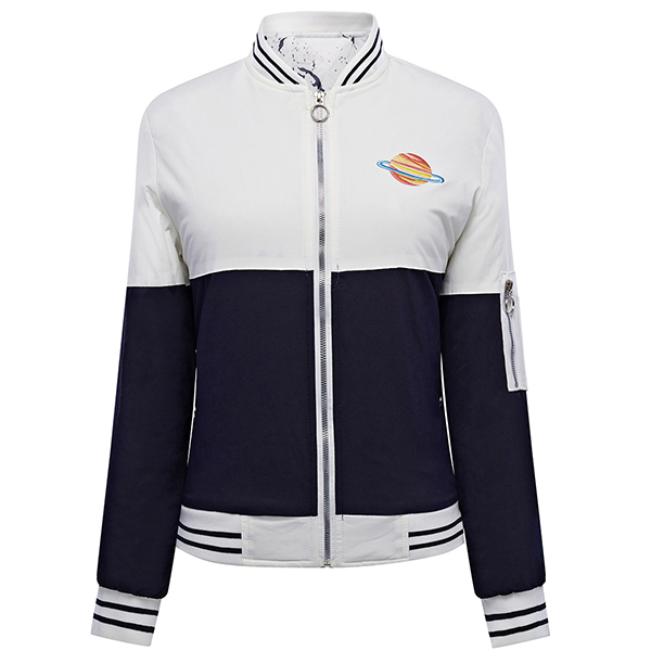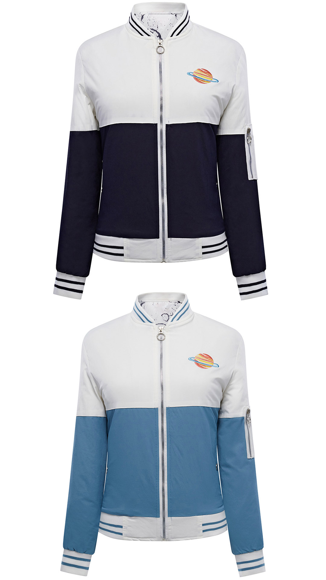 Fashion Contrast Color Long Sleeve Stand Collar Jacket