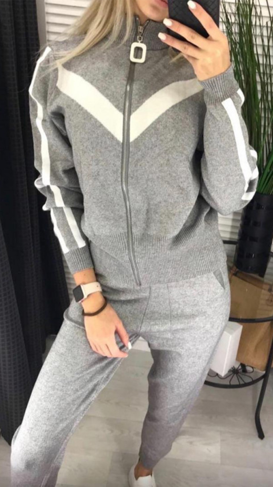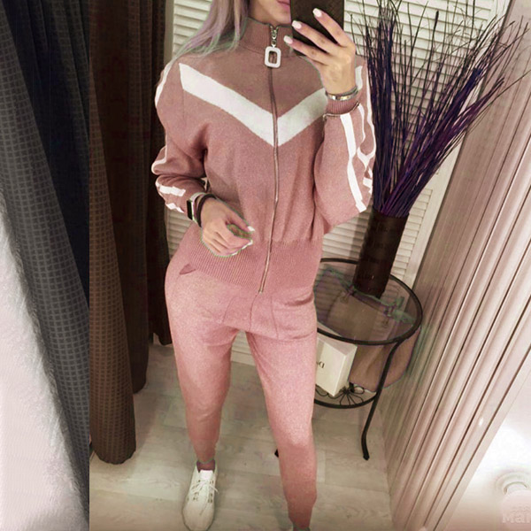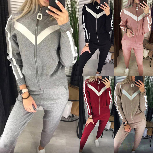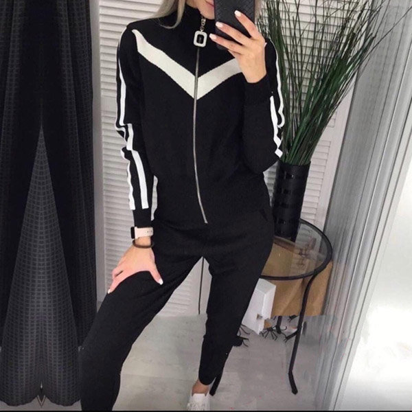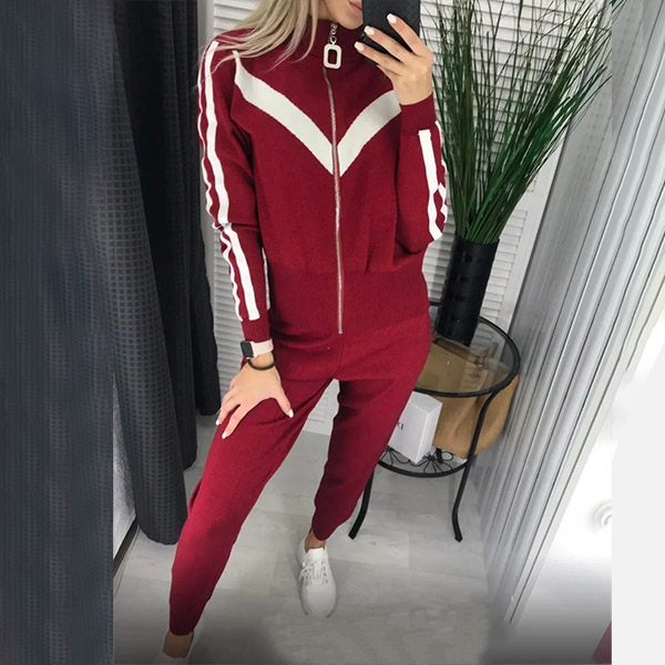 When you feel a little cold,then you can just slip into this knit two-piece set. Contrast color element design makes it look not so simple and dull. Including a long sleeve stand collar knit cat and a pants,designed with stand collar and front zipper closure,this knit two-piece set not only can keep the comfy,but also can exude your personality.