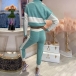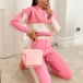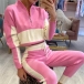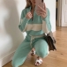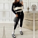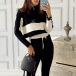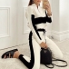 Fashion Contrast Color Long Sleeve Stand Collar Knit Top + Pants Two-piece Set