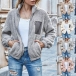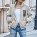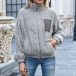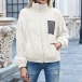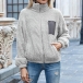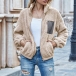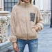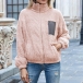 Fashion Contrast Color Long Sleeve Stand Collar Plush Coat
