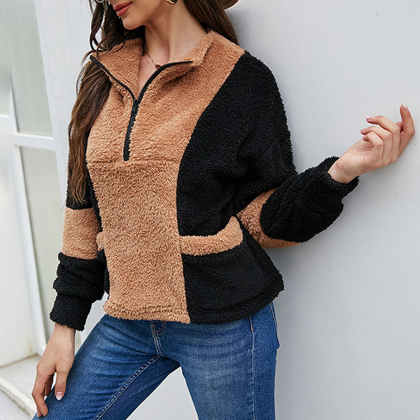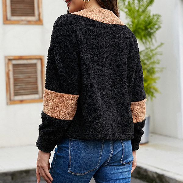 Fashion Contrast Color Long Sleeve Stand Collar Plush Sweatshirt