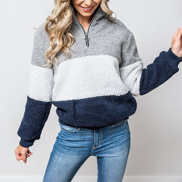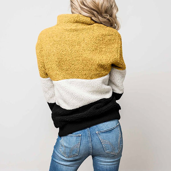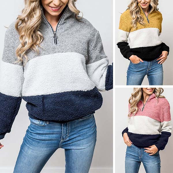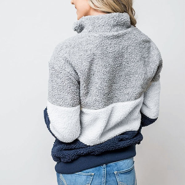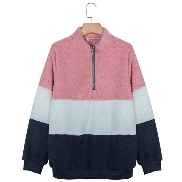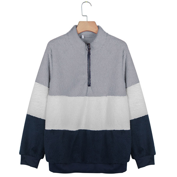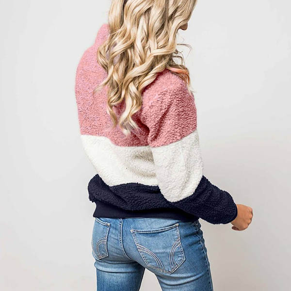 Fashion Contrast Color Long Sleeve Stand Collar Plush Sweatshirt