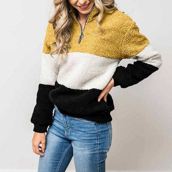 When the days get cold,this plush sweatshirt can strike your mind. Contrast color design makes it look so simple. Finished with long sleeve and stand collar design,its soft,cozy plush fabric knows how to give you a warm and comfortable day. You can match with your jeans to have a simple,laid-back but fashionable look.