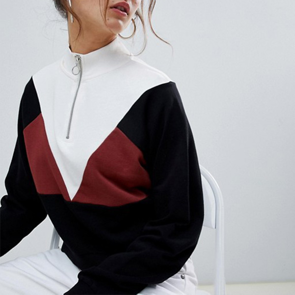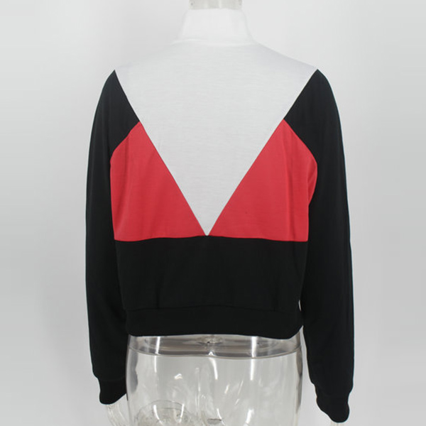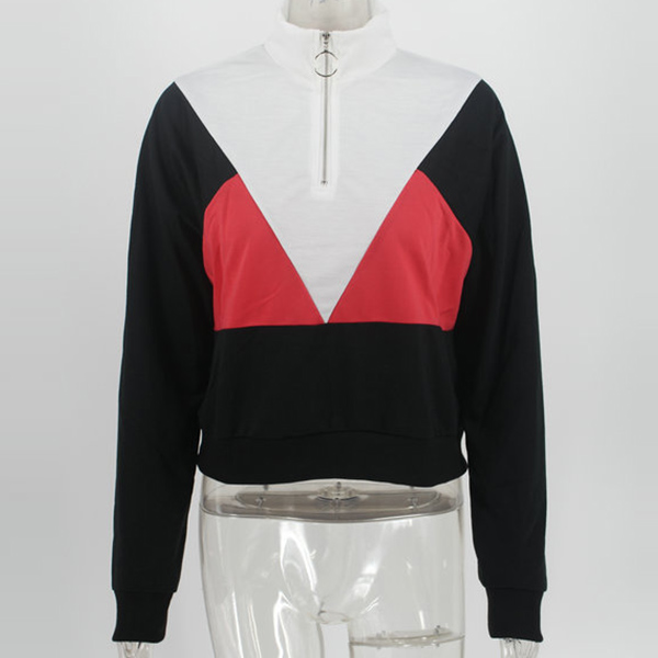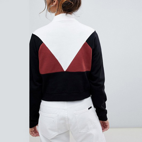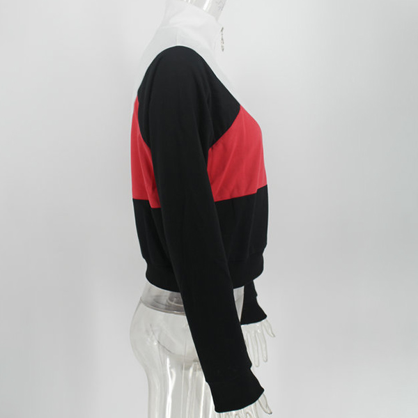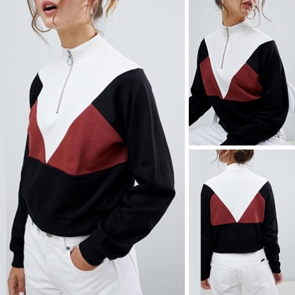 Fashion Contrast Color Long Sleeve Stand Collar Sweatshirt