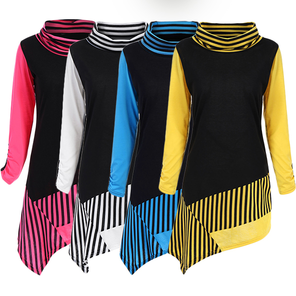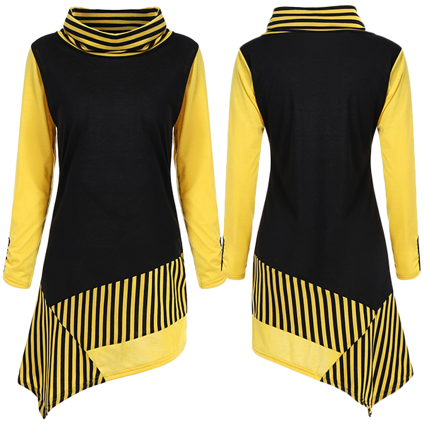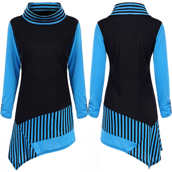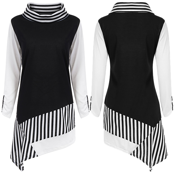 spliced design make this piece look eye-catching and stylish. Designed with long sleeve,turtleneck and an irregular hem,