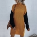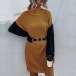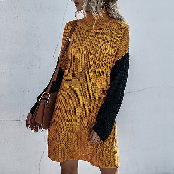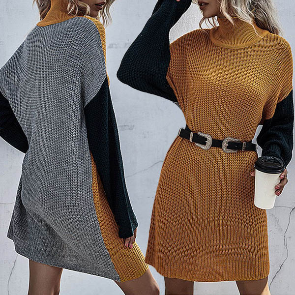 Fashion Contrast Color Long Sleeve Turtleneck Knit Dress