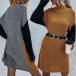When the days get cold,this knit dress is worth to be your wardrobe staple. Contrast color design makes this piece look more stylish and attractive. Finished with long sleeve,turtleneck and a fit silhouette,this knit dress can showcase your slender figure while it maintains your style and charm.