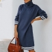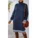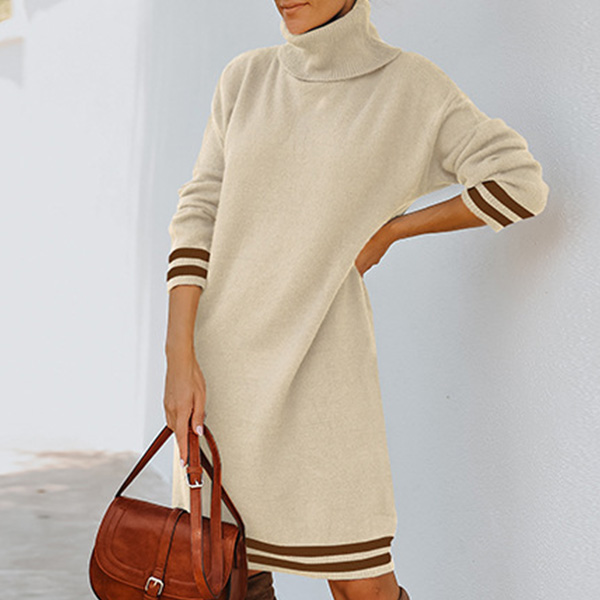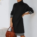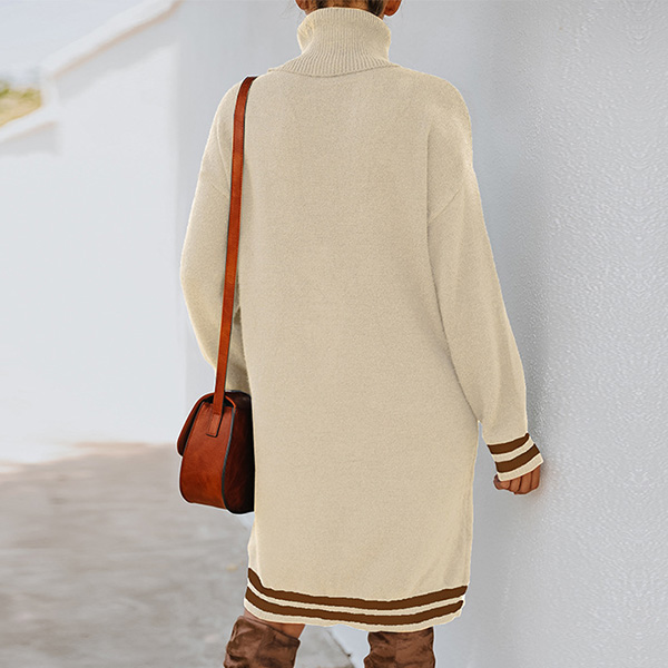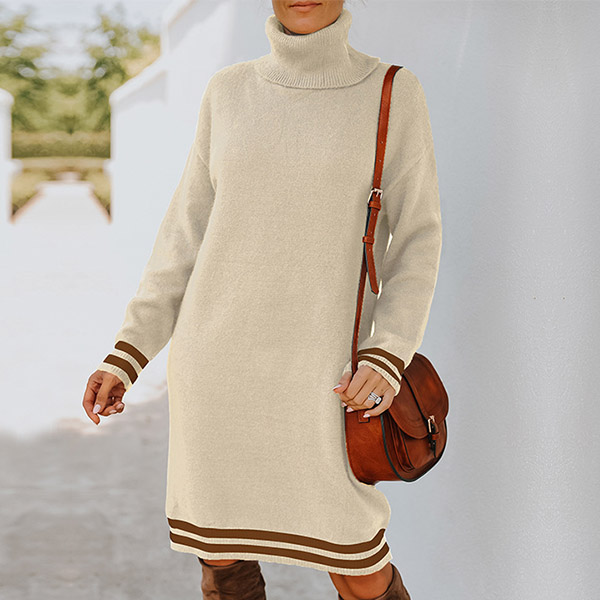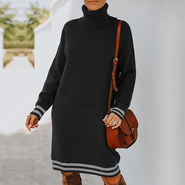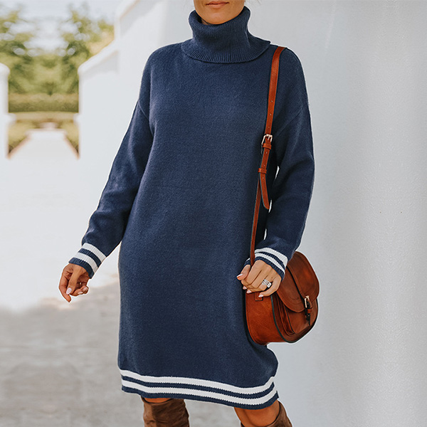 Fashion Contrast Color Long Sleeve Turtleneck Knit Dress