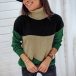 Fashion Contrast Color Long Sleeve Turtleneck Knit Top