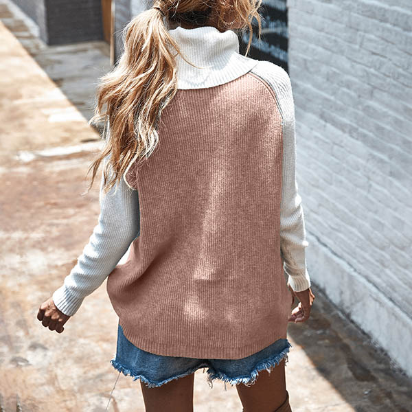 Fashion Contrast Color Long Sleeve Turtleneck Sweater