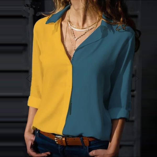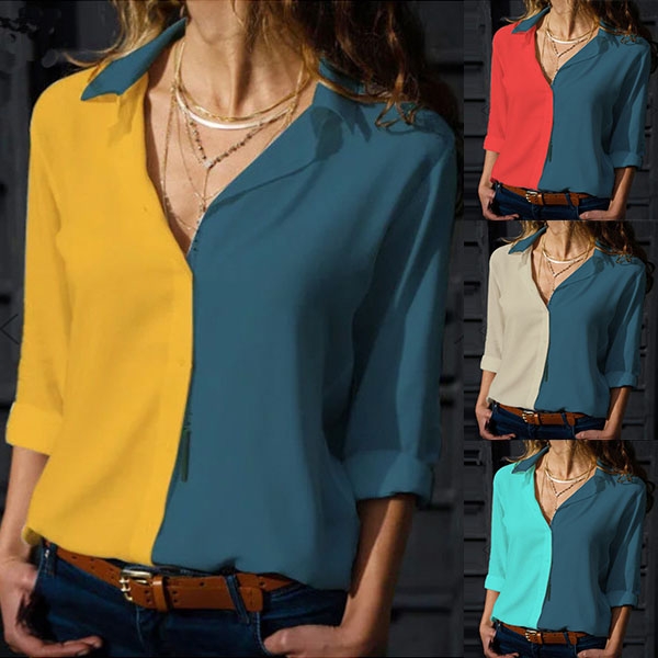 Add a dash of chic and different vibes to your wardrobe with this blouse. Contrast color design