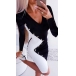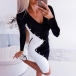 You can easily win more eyes when you dress yourself up with this dress. Contrast color element and front-button details make this piece look so stylish and attractive. Finished with long sleeve,v-neck and a super-fit silhouette,this dress not only can enhance your feminine appeal,but also can portray your slender figure. This dress is perfect fit for your fancy events.