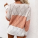 Fashion Contrast Color Long Sleeve V-neck Hollow Out Knit Sweater Top
