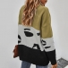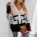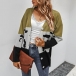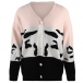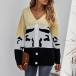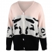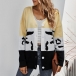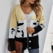 Fashion Contrast Color Long Sleeve V-neck Knit Cardigan