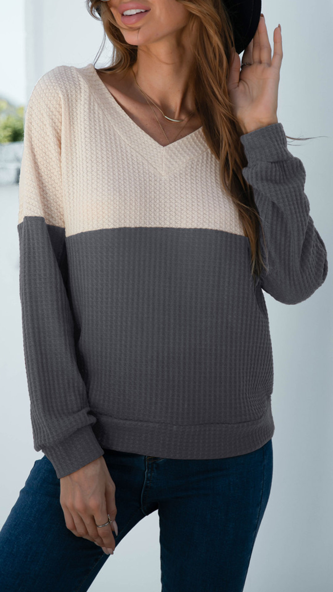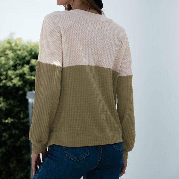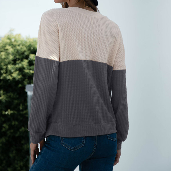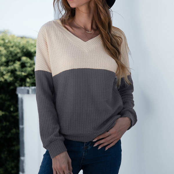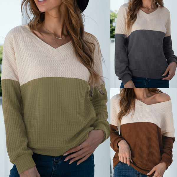 For your spring and autumn days,this knit top would be your perfect partner. Contrast color style,finished with long sleeve,v-neck and a loose silhouette,this piece can keep the comfy and warmth. No matter matching with a shorts,skirt or jeans,it can hardly go wrong!