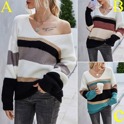 Give your wardrobe a seasonal update by adding this knit top. The contrast color element design breaks the simple and dull design style. Finished with long sleeve and v-neck design,this piece also can ensure you a warm and comfortable day with its soft and breathable knitted fabric. All-match design can offer your different matching styles.