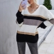 Fashion Contrast Color Long Sleeve V-neck Knit Top