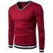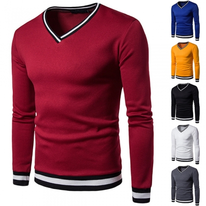 Fashion Contrast Color Long Sleeve V-neck Men's T-shirt
