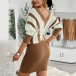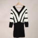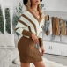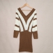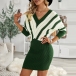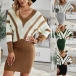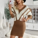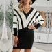 Fashion Contrast Color Long Sleeve V-neck Slim Fit Sweater Dress