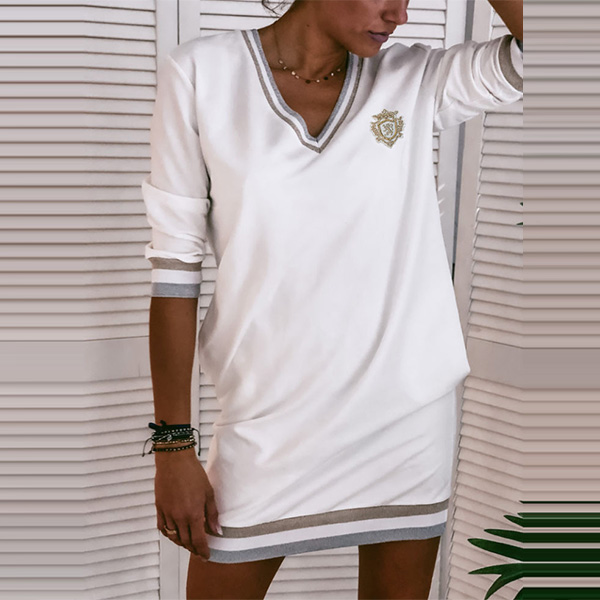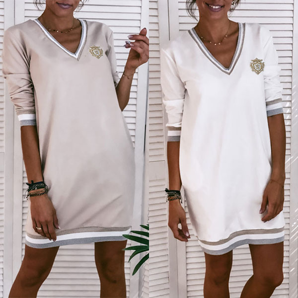 For a casual,relaxed yet fashionable autumn look,this sweatshirt can be your wise choice. Contrast color design makes it look not so simple and dull. Finished with long sleeve and v-neck design,this dress also can ensure you a comfortable day with its soft and breathable fabric.