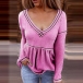 Cozy and effortlessly fashionable, this top is yearning for a place in your wardrobe. Contrast color design make it look not so simple and dull. Crafted from soft and breathable fabric,with long sleeve and v-neck design,this top not only can give you a comfortable day,but also can offer many matching opportunities.