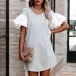 Fashion Contrast Color Lotus Sleeve Round Neck Dress