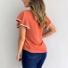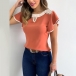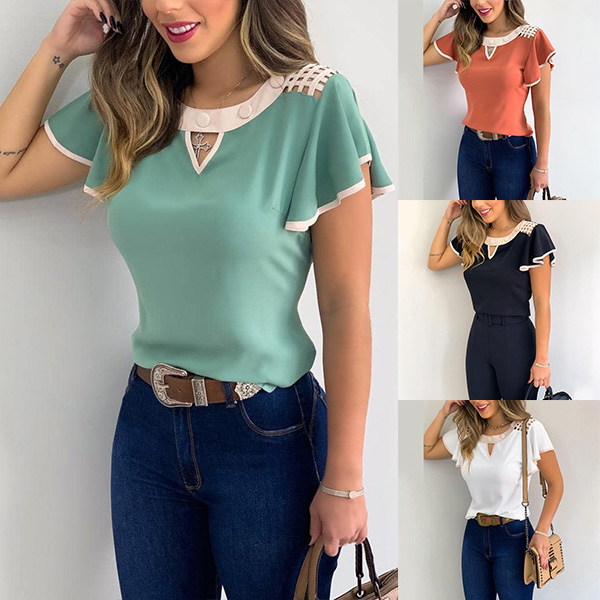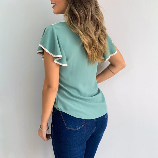 This t-shirt that exudes sweet and stylish vibes is yearning for a place in your wardrobe. The contrast color element and lotus sleeve design are the highlights,which make this piece full of style and charm. Attracted? Then add it to your wardrobe!