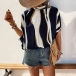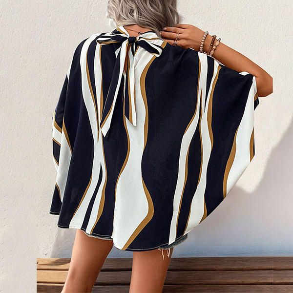 This is a stylish and unique piece that combines a modern silhouette with a bold color-blocking design. I like the batwing sleeve design, and you?