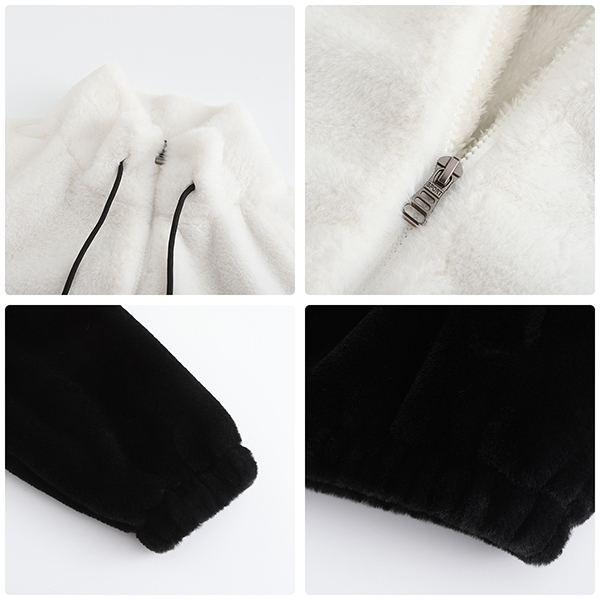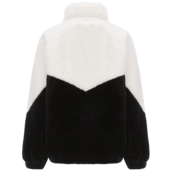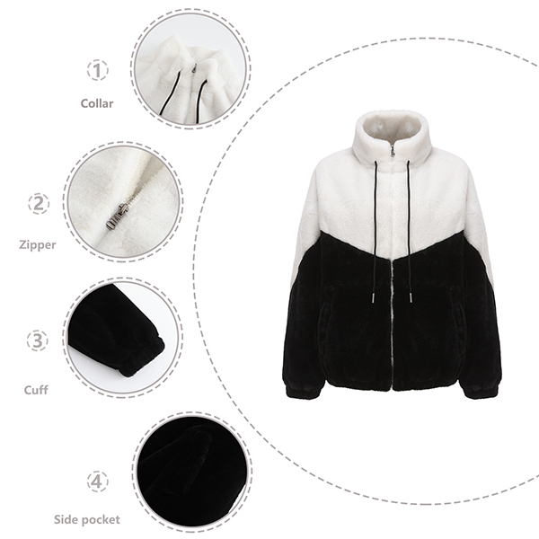 This jacket combines style, comfort, and a touch of sporty flair for a fashionable and cozy look. The contrast color design adds visual interest and a pop of excitement to your outfit. The plush fabric provides warmth and softness, making it perfect for this season!