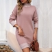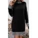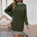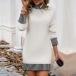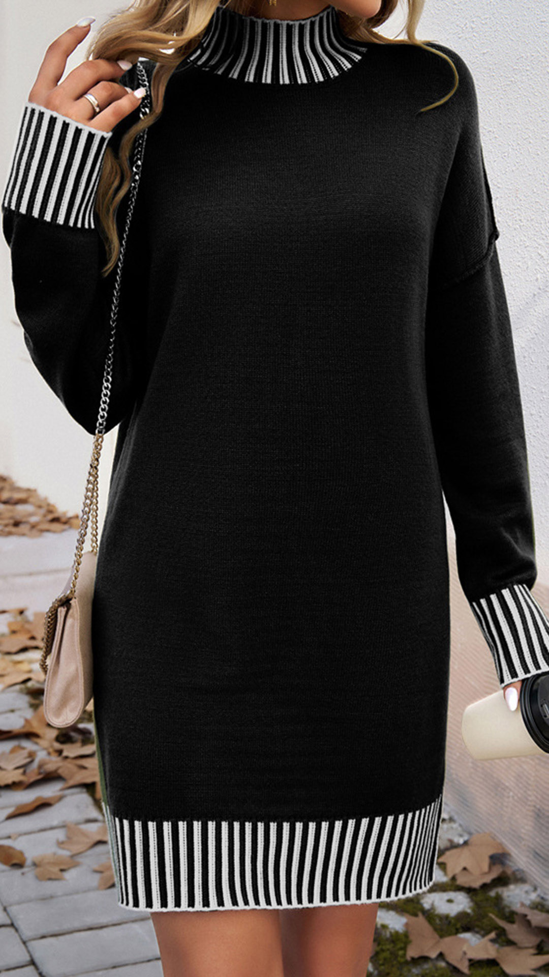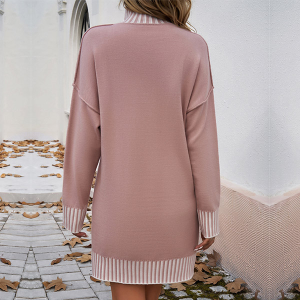Fashion Contrast Color Mock Neck Long Sleeve Knitted Sweater Dress