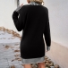 This sweater dress features contrast color stripe pattern along the neckline, cuff and hemline, add visual interest and a bold statement to the dress, creating a dynamic and eye-catching look. You could pair it with tights and ankle boots for a cozy yet chic winter look.