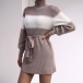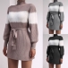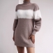 This sweater dress is perfect for a these days! The long sleeves and mock neck will keep you warm, while the self-tie waist gives you a flattering shape. The contrast colors are fun and trendy. Wanna have a try?