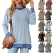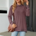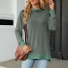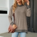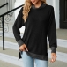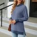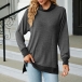 Fashion Contrast Color Mock Neck Long Sleeve Slit High-low Hemline Shirt