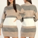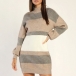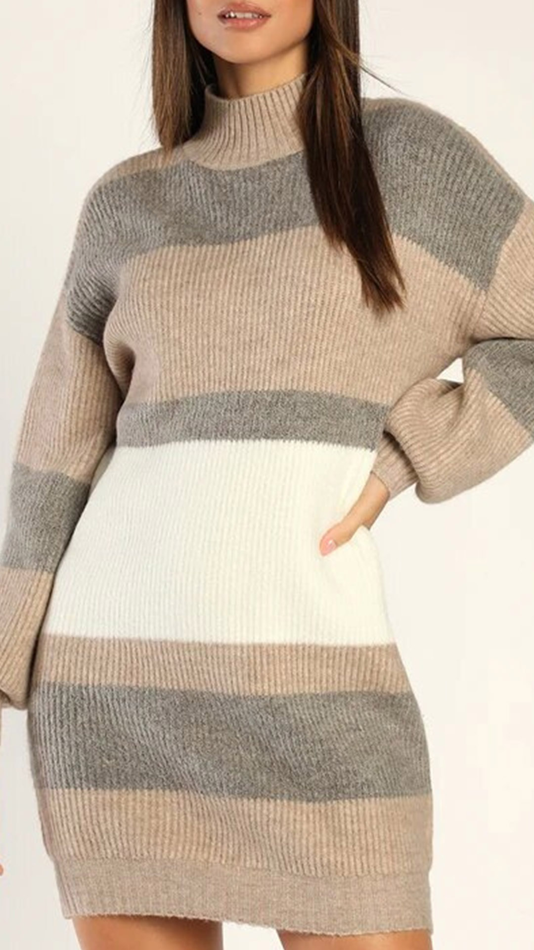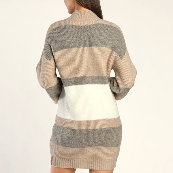 Fashion Contrast Color Mock Neck Long Sleeve Sweater Dress