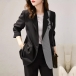 Fashion Contrast Color Notch Lapel Long Sleeve Blazer for Women