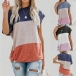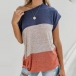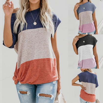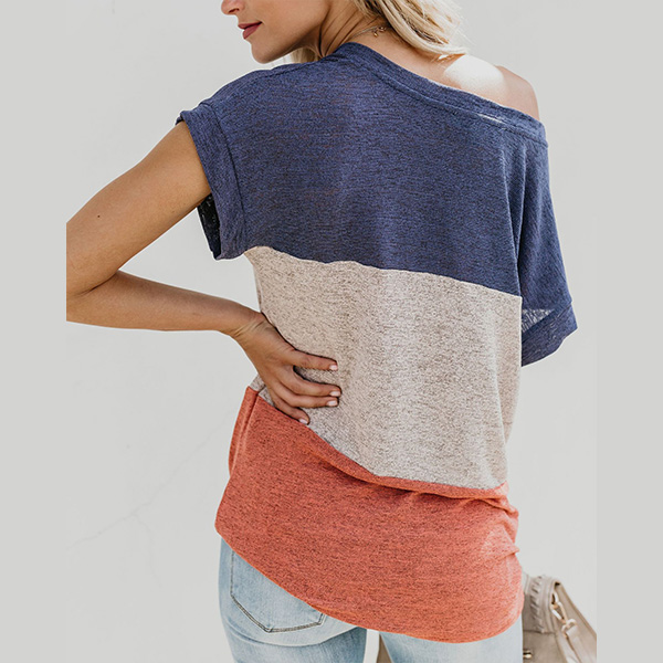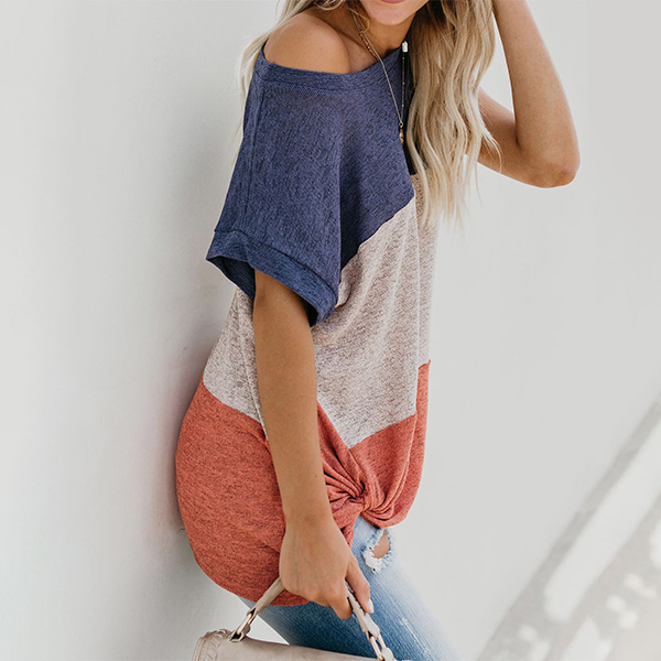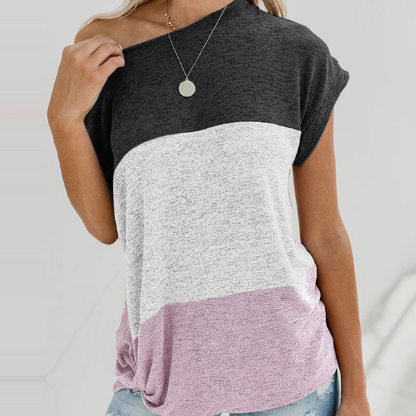 Fashion Contrast Color Oblique Shoulder Short Sleeve Twisted Hem T-shirt