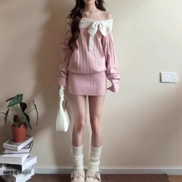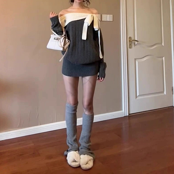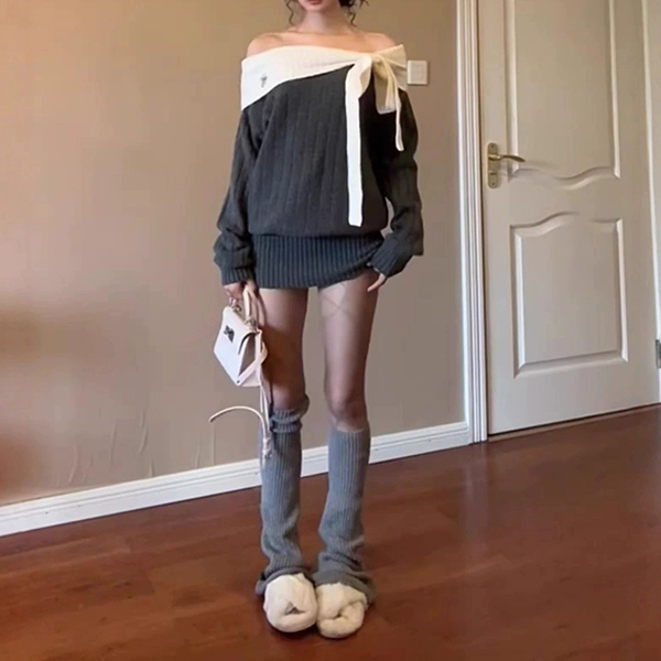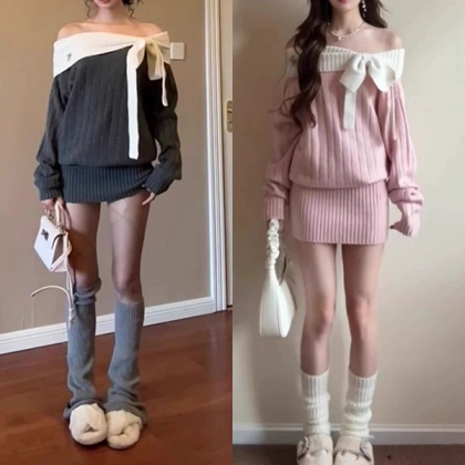 This sophisticated dress features striking contrast color styling with romantic off-the-shoulder construction and charming bowknot detailing for contemporary bold elegance. Pair with over-the-knee boots for fashion look~