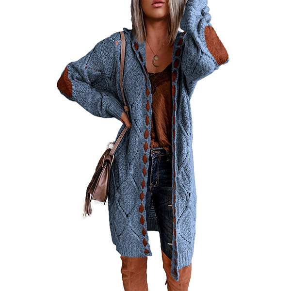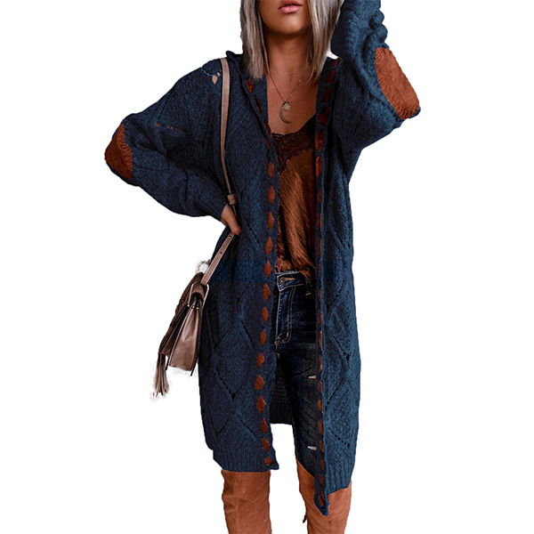 Fashion Contrast Color Patch Spliced Loose Knit Cardigan