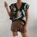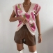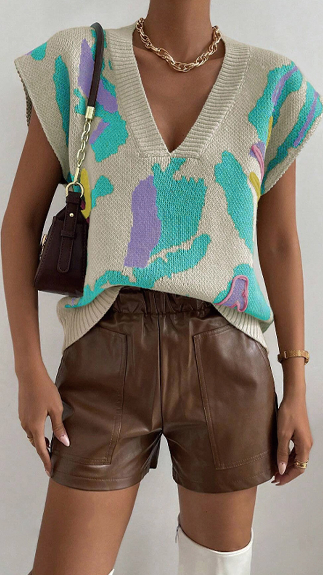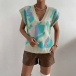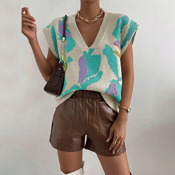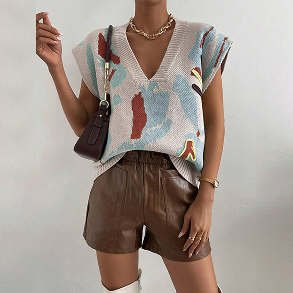 Fashion Contrast Color Pattern V-neck Sleeveless Knitted Vest