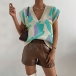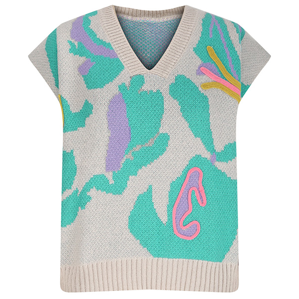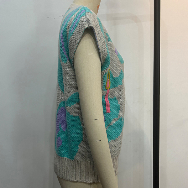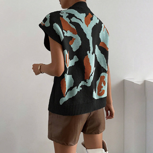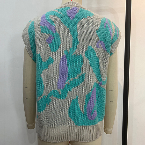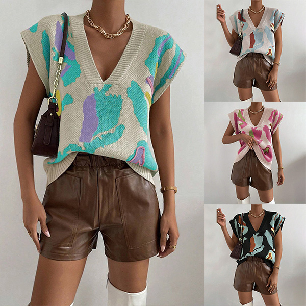 Make a fashion statement with this trendy knitted vest. The contrast color pattern adds a pop of visual interest and a modern touch to the classic knitted vest, making it a stylish and eye-catching piece. The V-neck design offers a flattering and versatile look, perfect for layering over shirts or blouses. Pair this knitted vest with jeans and boots for a casual and on-trend look, or layer it over a dress for a more polished ensemble.