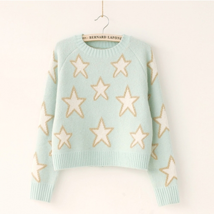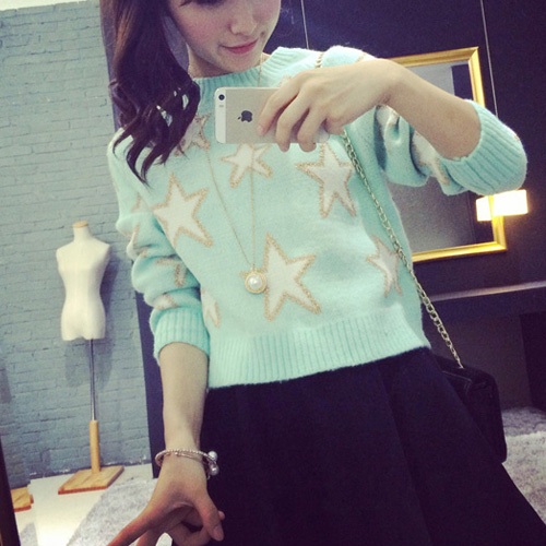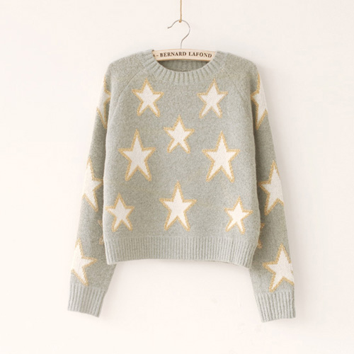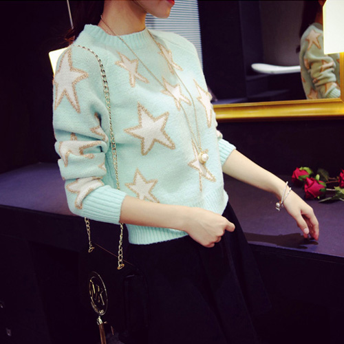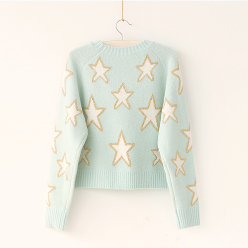 Sweater is a must for you in cold days. Add this unique sweater to your wardrobe! It features contrast color design,with Pentagram pattern. Fashion round and long sleeve design. Perfect for pairing with high waist jeans.