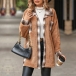 Fashion Contrast Color Plaid Pattern Stand Collar Long Sleeve Jacket