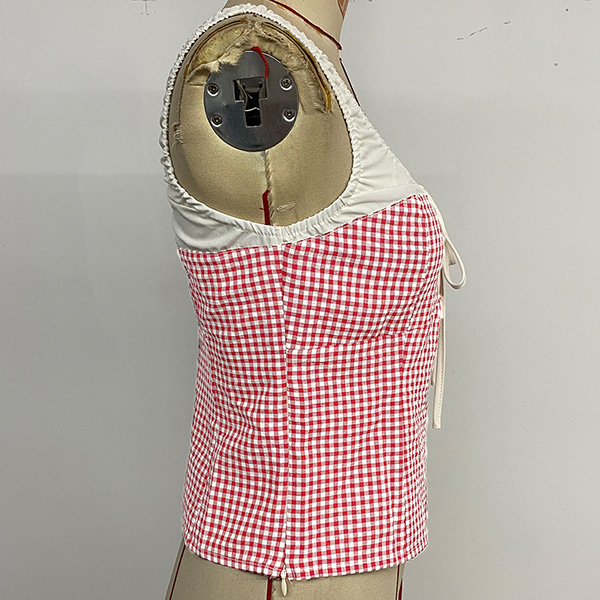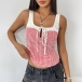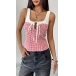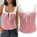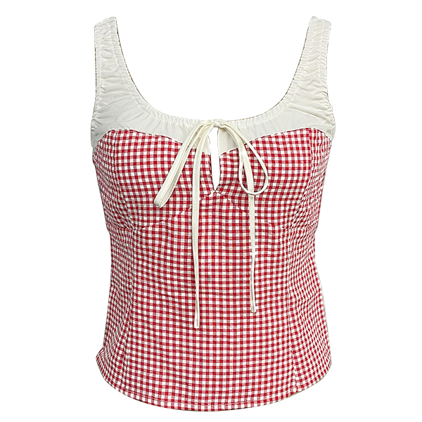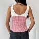 Fashion Contrast Color Plaid Self-tie Square Neck Front Cutout Sleeveless Tank Top