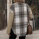 Look at this jacket! The contrast color plaid adds a modern and eye-catching element to the jacket, giving it a trendy and unique look. This jacket is perfect for adding a pop of color and personality to your outfit. Wanna have a try?