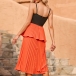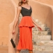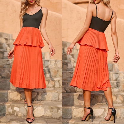Fashion Contrast Color Pleated Ruffled Slip Dress