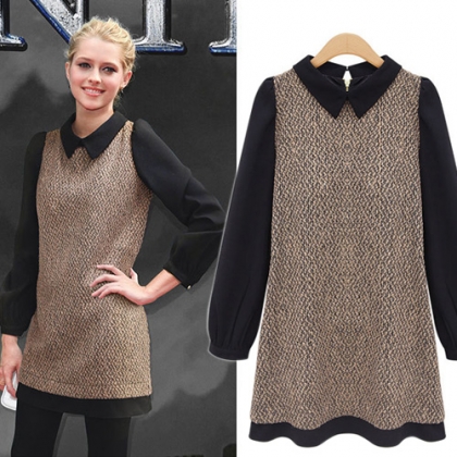 This dress is characterized by contrast color design,fashion and popular. Sweet POLO collar,
