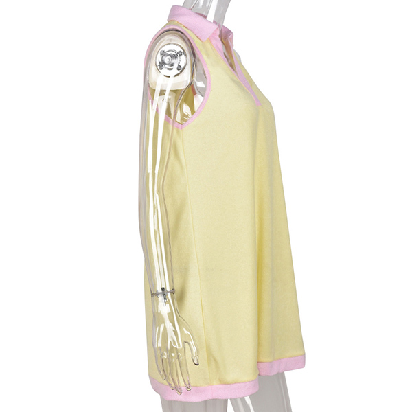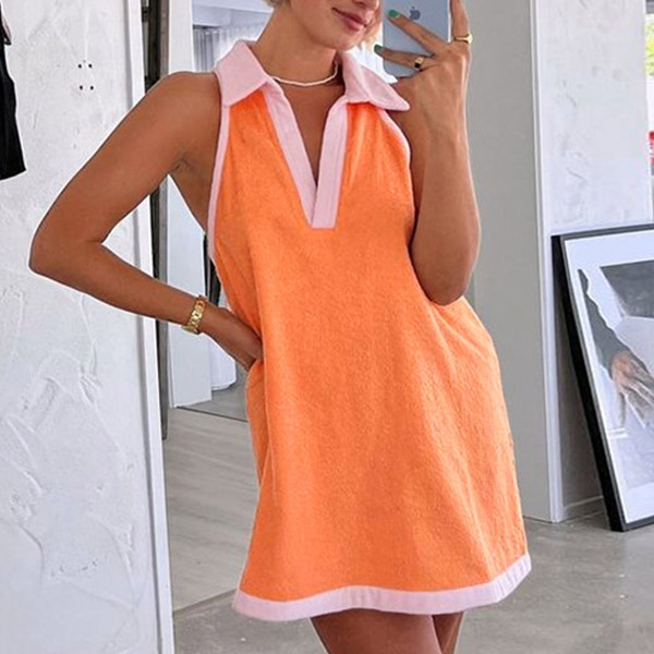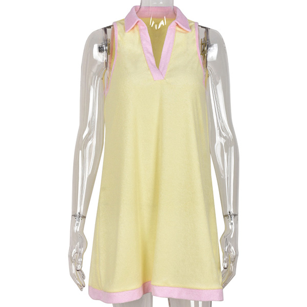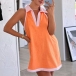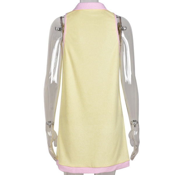 Fashion Contrast Color Polo Neck Sleeveless Mini Dress