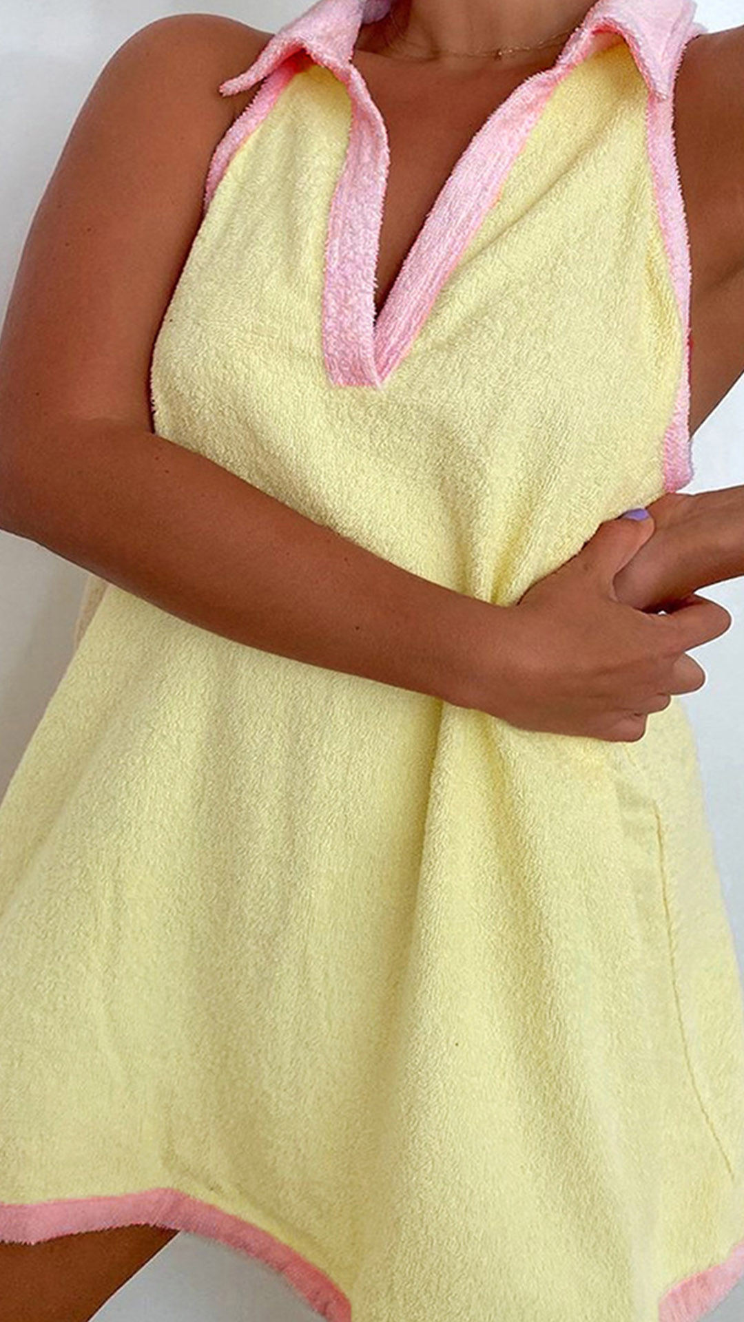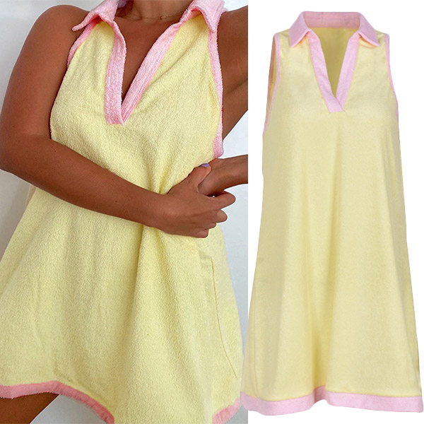 Looking for a stylish and unique mini dress? Try this one. With a polo neck and sleeveless design, this dress is both stylish and comfortable.